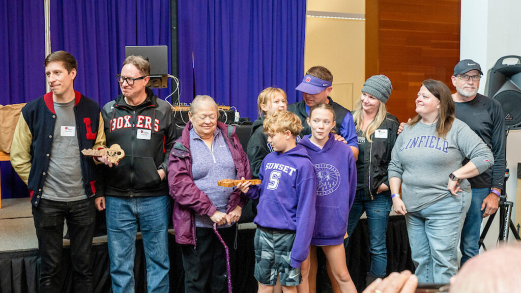 To honor the group’s legacy of friendship, service and Wildcat pride, Blegen declared Saturday, Oct. 11, 2025, as “BWC Appreciation Day” at Linfield. He read an official proclamation and presented each of the club’s founders — Bill Hayden ’71, Steve Lathrop ’71, Mike Maley ’72, and the families of Gil Hargreaves ’71 and Kip Patterson ’72— with “keys to the university.” Each handcrafted wooden key was made from wood salvaged from the university’s historic Old Oak.