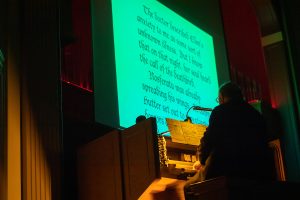 While many of the events were large and open to the public, including an Erickson Lecture from Guardian columnist and American Book Award winner Moustafa Bayoumi, Richardson’s Friday night talk “The Stories Behind the Stories: Behind the Scenes of Dark Horse Comics’ Most Iconic Projects”, and a songwriting workshop from Nashville country-music artists Jessie G ’12 and Christian Santangelo ’15, just as significant were the smaller, student-only sessions held during the day.