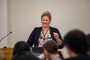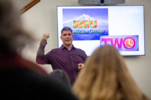 “We talked about the different factors that go into sideline reporting — what to pay attention to during the game and how to find the human interest stories within the team,” Kalani said. “I’m so grateful for all of the tips and tricks that Brenna shared … and the opportunity Linfield creates for students to connect with professionals in the industries we aspire to work in.”