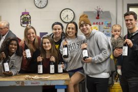 Cameron Reuter, Erin Burns, Hanna Bingham, Lily Hanridge, Maxwell Bonda, Patrick McKee, Ryan Clark and Tia Elder took the top prize in the Business Plan category for their brand, “Odd One Out, Cultivar Cellars Gamay Noir.”